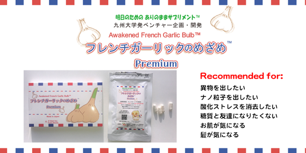 そこで、フレンチガーリックを独自開発グランディール製法™により、1-2日で迅速・同時にめざめてもらい、赤ちゃんの生命力の成分を作ってもらいました。この後加熱しフリーズドライしました。抽出も濃縮もしない、長い食習慣がある安心な食品のままで、パワーアップに成功した明日のためのありのままサプリメント™です。 年齢とともに低下していく若々しさや健やかさ。これをフレンチガーリックの赤ちゃんの生命力が、体本来の力に働きかけて、メンテナンスのお手伝いをします。