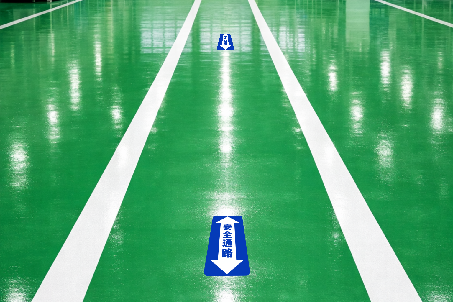 青色タイプは安全通路の標準色として多くの工場で採用されており、