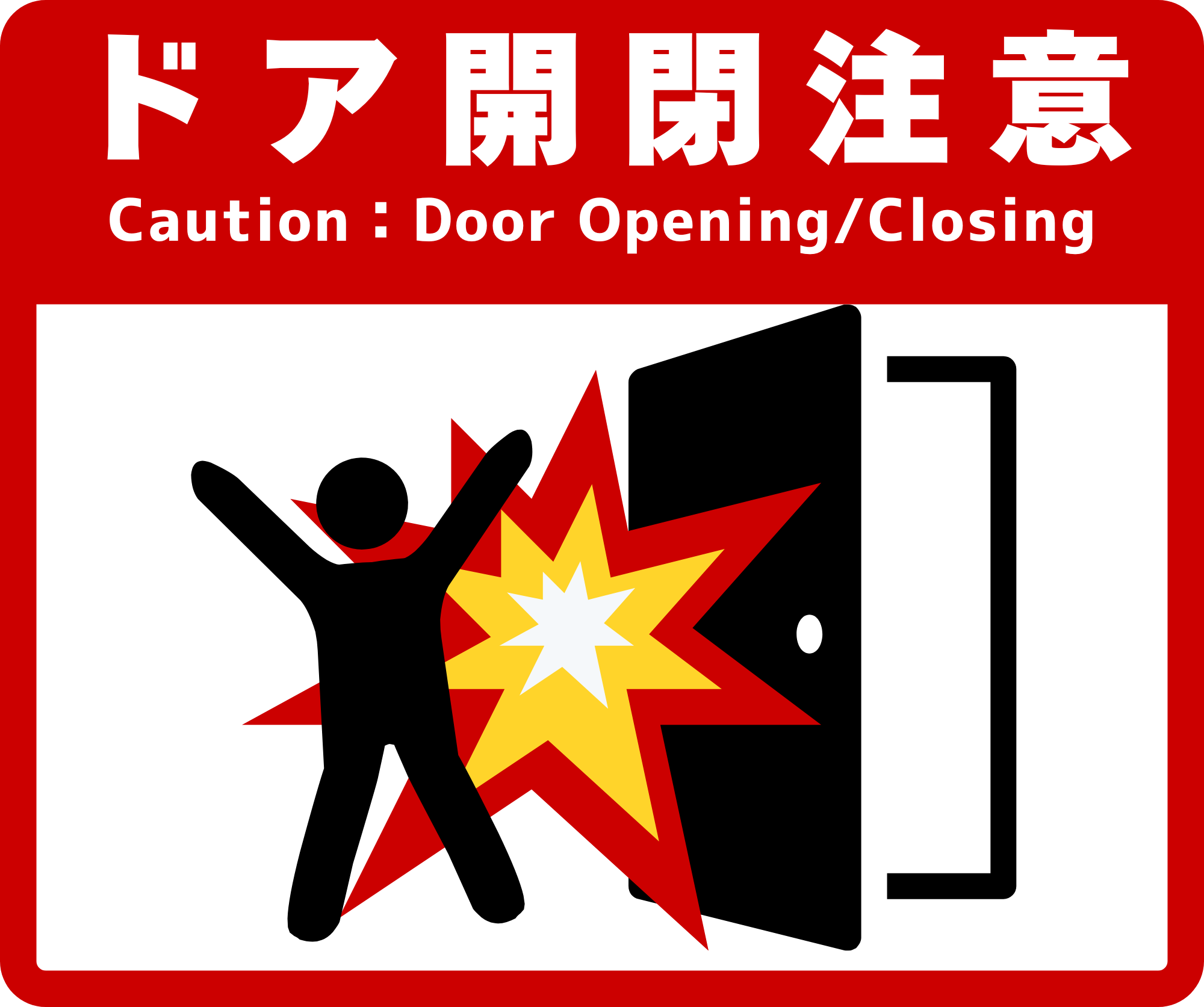 「ドアに注意!」を直感的に伝えるデザインになっています。